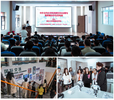 3月27日上午,院长高云以“中外合作办学机构跨文化治理与高质量合作生态构建”为题作专题讲座,系统分享了学院在跨文化融合与管理机制方面的实践经验。在随后的实地参访环节,学院优秀学生代表担任讲解员,带领与会人员依次参观学院大楼和湖大—曼城大联合智能传感创新中心。学生们从容自信、表达清晰,围绕学院发展历程、人才培养特色、科创平台建设等内容进行生动讲解,充分展现了学院以学生成长为中心、以高质量合作生态赋能人才培养的实践成效,赢得参访嘉宾一致好评。